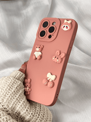 Apple iPhone 15 Pro Ayıcık Desenli Sevimli Silikon Lansman Toy-Bear Kılıf