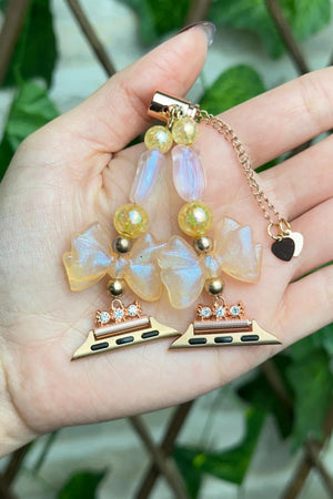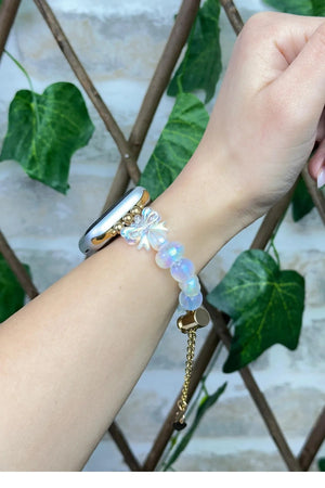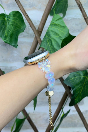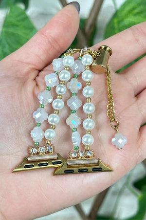 Bu el yapımı Apple Watch kordonu, zarif inci görünümlü boncuklar ve altın detaylarıyla saatinize şıklık katıyor. Modern ve göz alıcı tasarımıyla hem günlük kullanımda hem de özel günlerde tarzınızı tamamlar. Apple Watch ile uyumlu olan bu aksesuar, kolay kullanımı ve estetik görünümüyle dikkat çekiyor.
