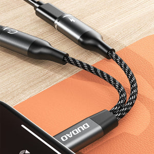 DUDAO L13C+ 2'si 1 Arada Type-C Dönüştürücü - Şarj ve Müzik, 2A Örgü Kablo (10cm)