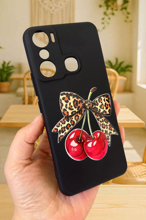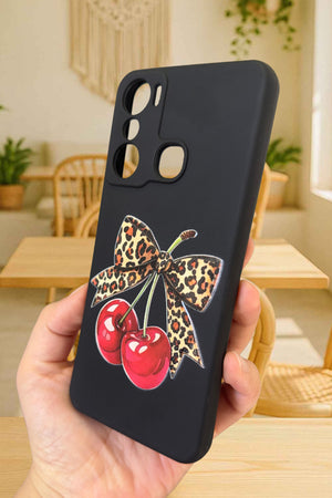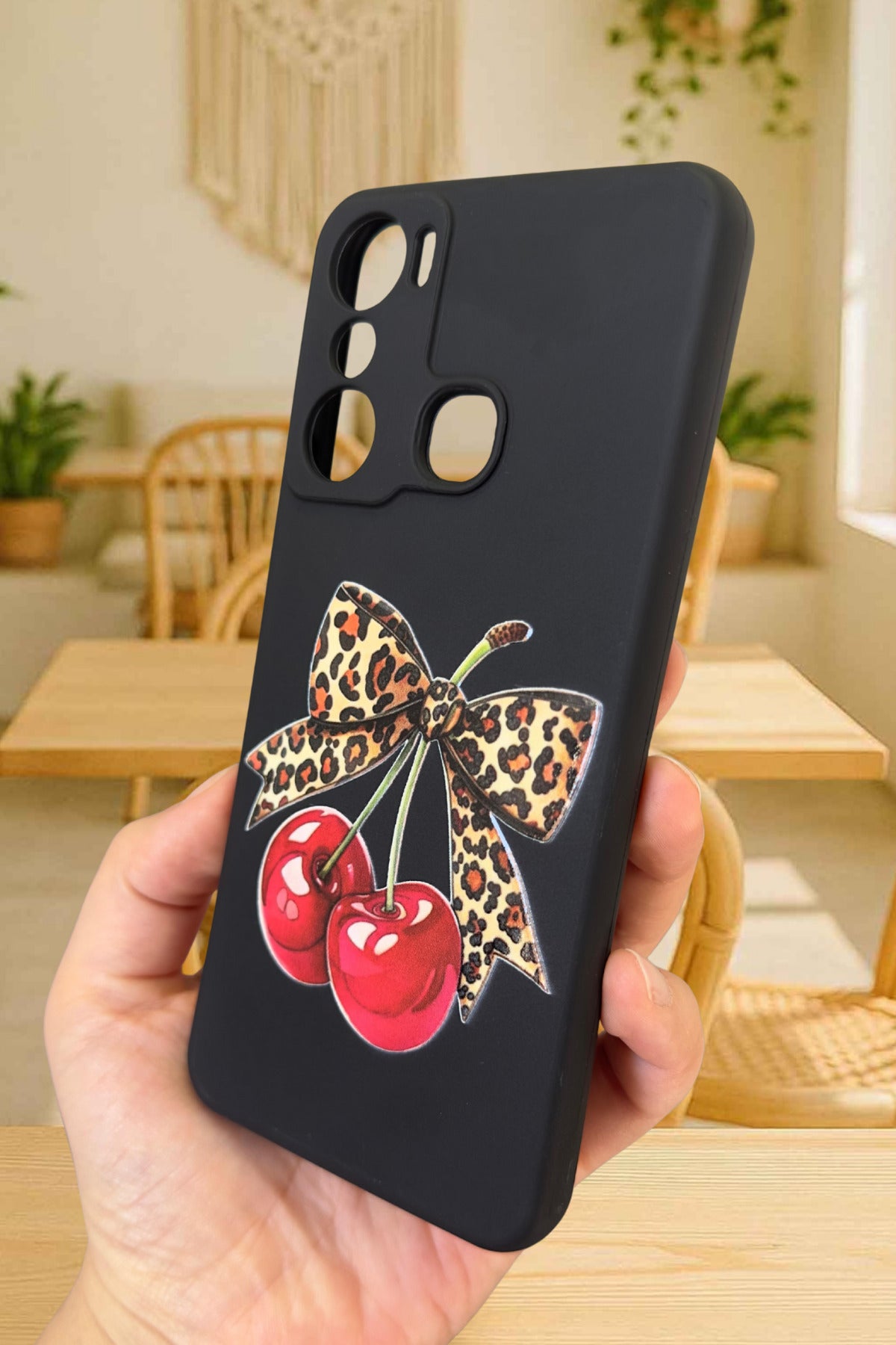 İNFİNİX HOT 20İ Uyumlu Kiraz Leopar Fiyonk Desenli Silikon Darbe Emici Rubber Kılıf