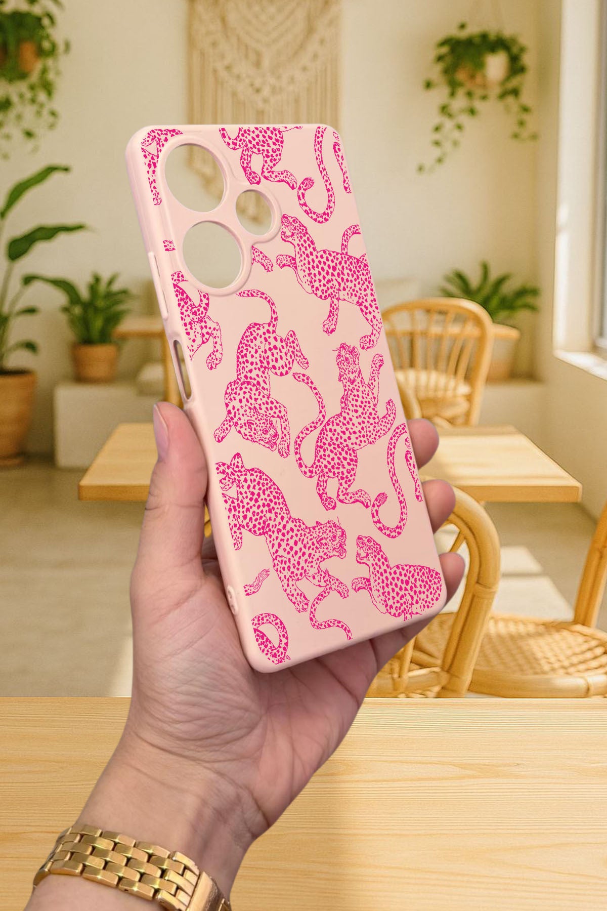İNFİNİX HOT 30 - PEMBE LEOPAR DESENLİ Silikon Darbe Emici Klasik Korumalı Rubber Kılıf