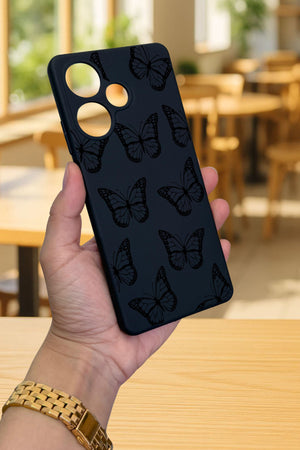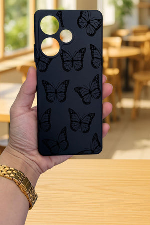İNFİNİX HOT 30 - SİYAH KELEBEK DESENLİ Silikon Darbe Emici Klasik Korumalı Rubber Kılıf