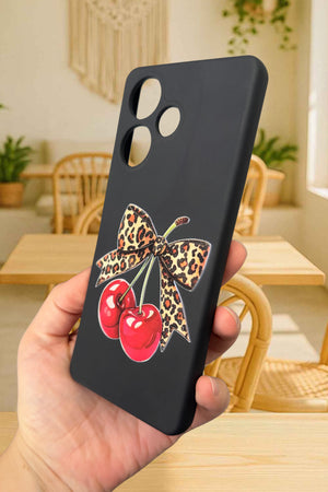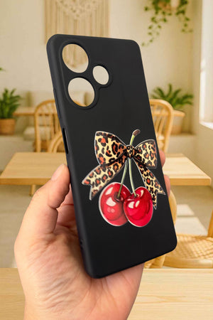 İNFİNİX HOT 30 Uyumlu Kiraz Leopar Fiyonk Desenli Silikon Darbe Emici Rubber Kılıf