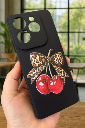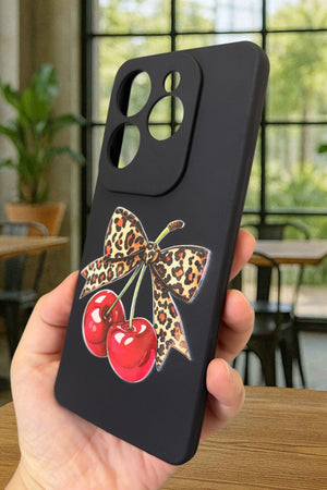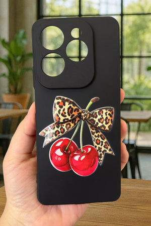 İNFİNİX HOT 40 Uyumlu Kiraz Leopar Fiyonk Desenli Silikon Darbe Emici Klasik Rubber Kılıf