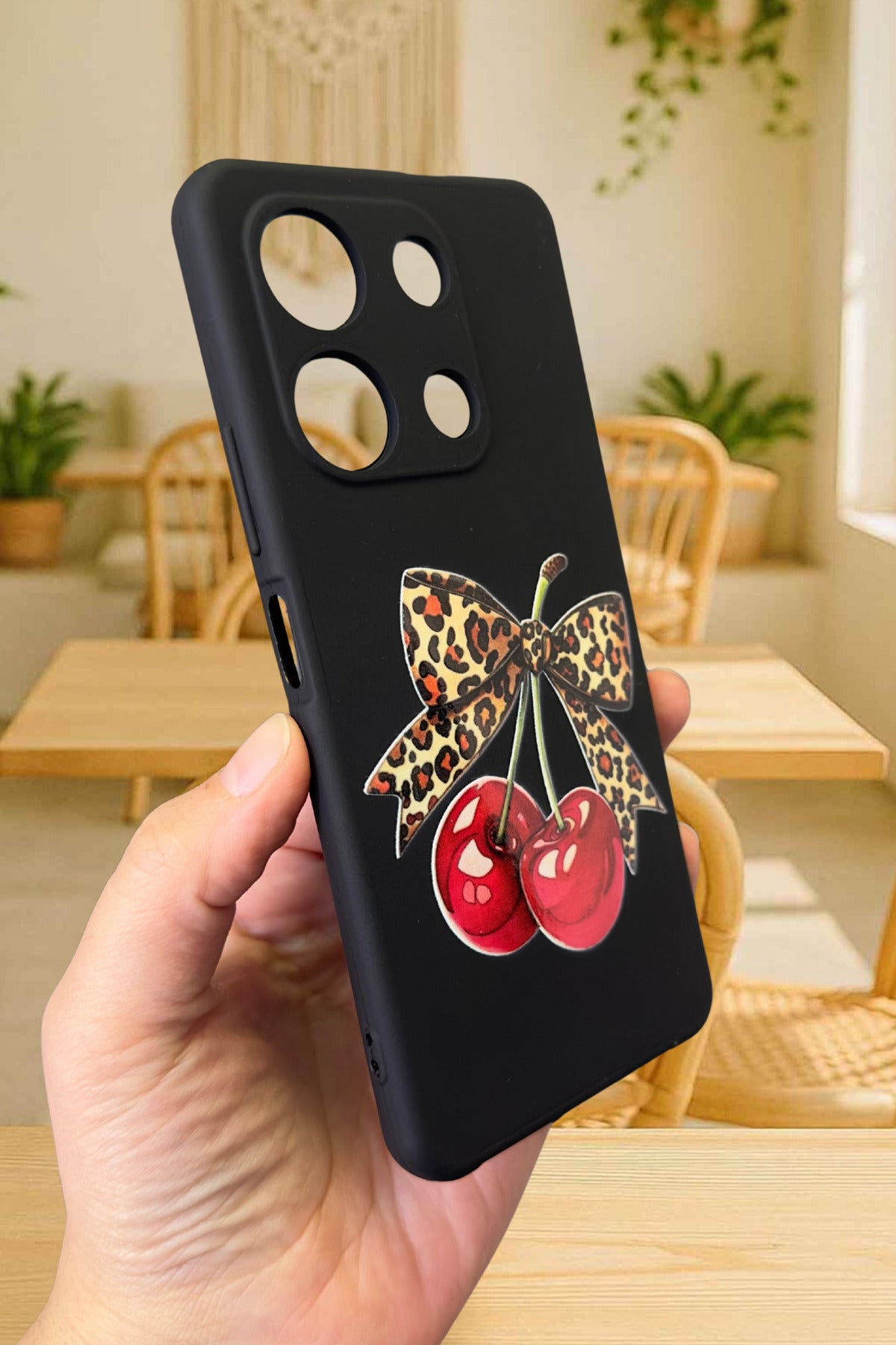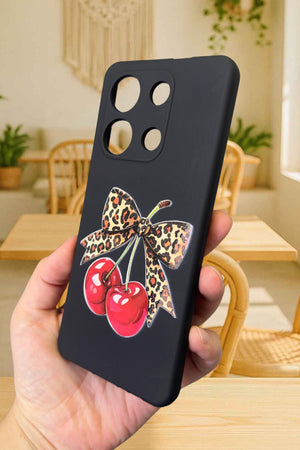 İNFİNİX NOTE 30 Uyumlu Kiraz Leopar Fiyonk Desenli Silikon Darbe Emici Rubber Kılıf