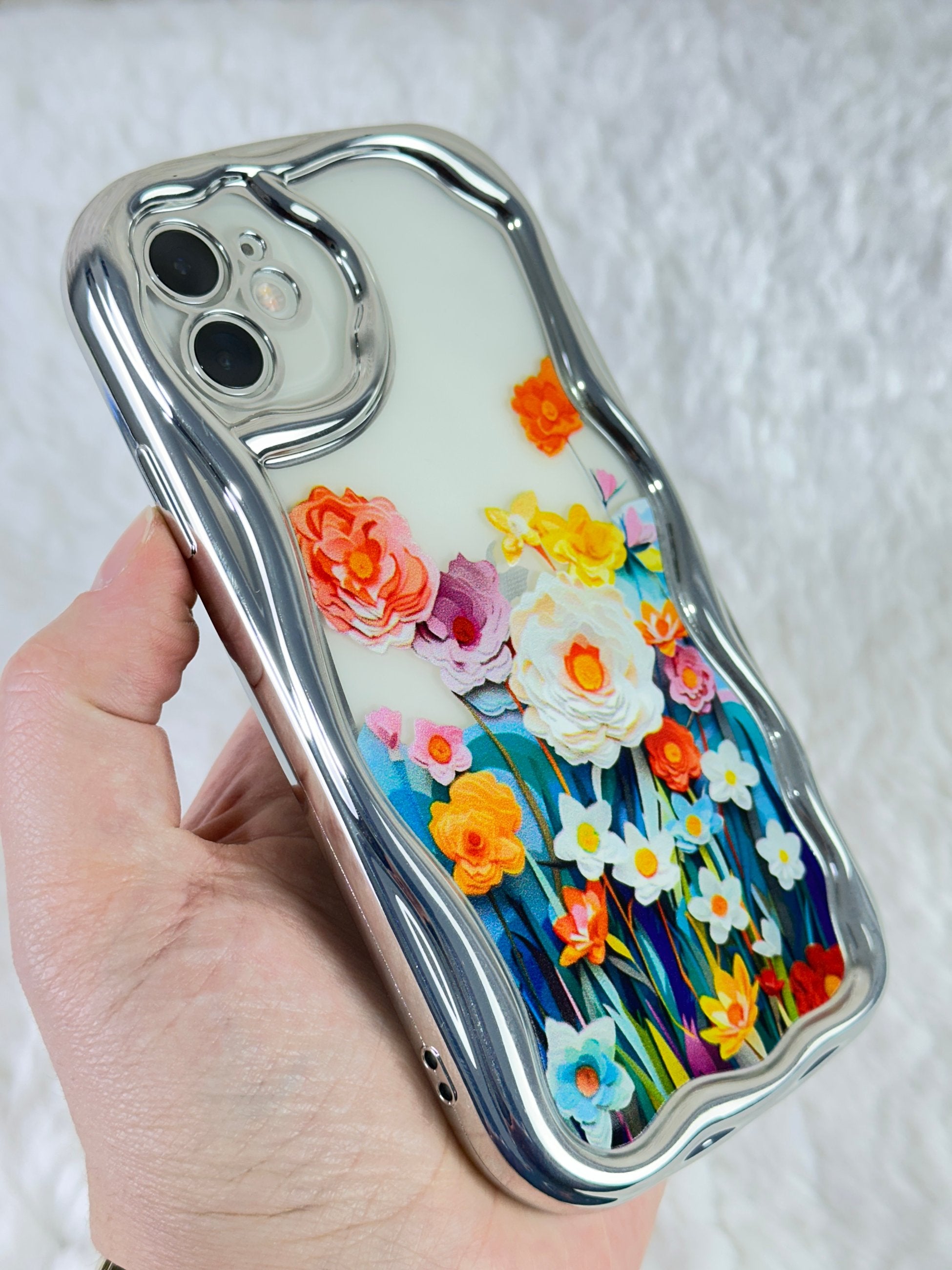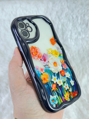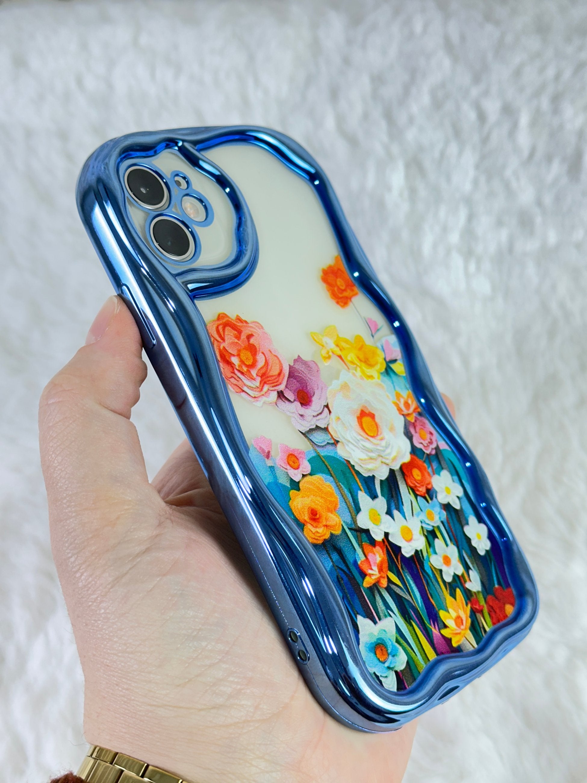 iPhone 11 Dalgalı Kenarlı Renkli Çiçek Desenli Kamera Korumalı Bloss Kılıf