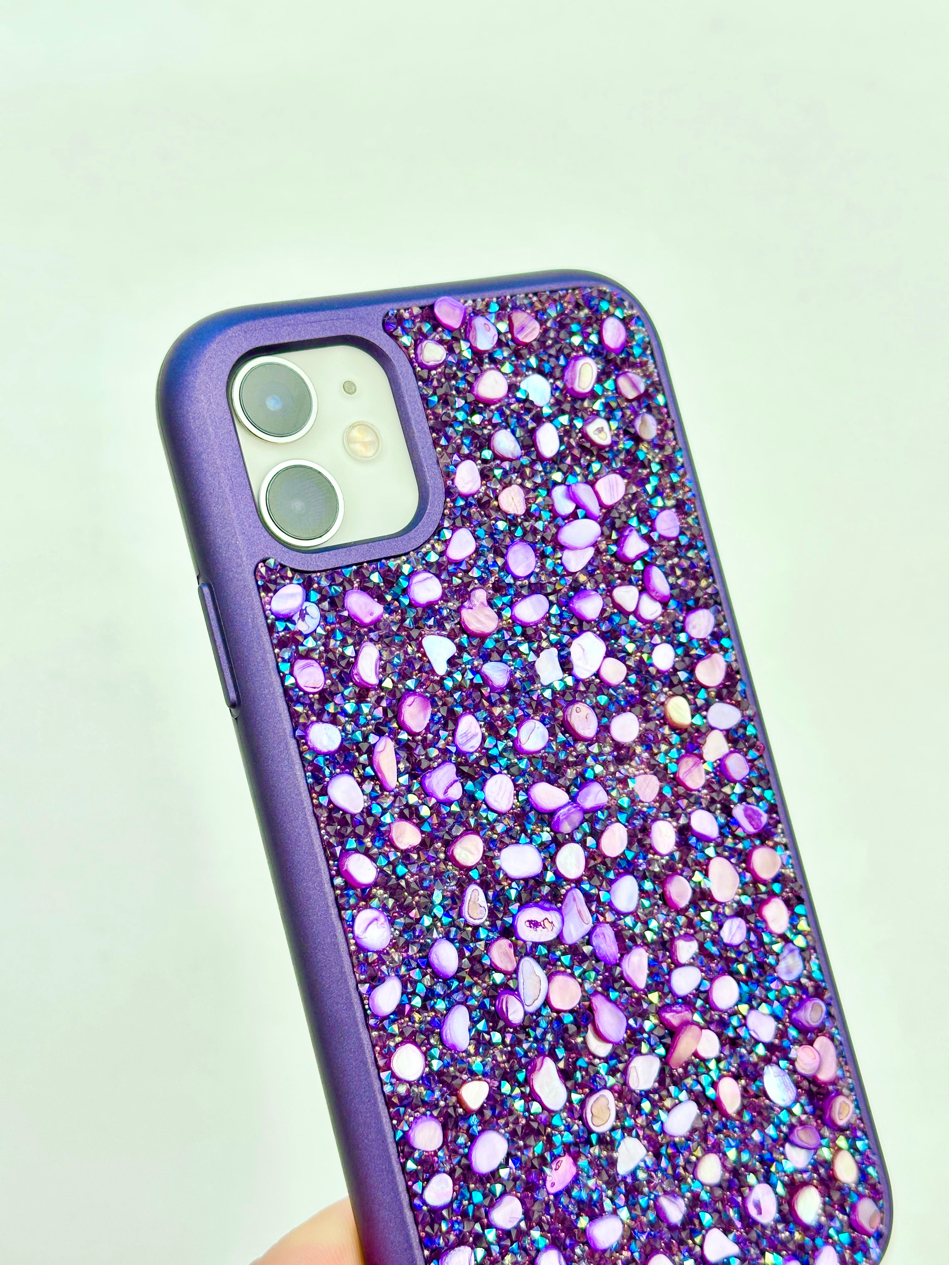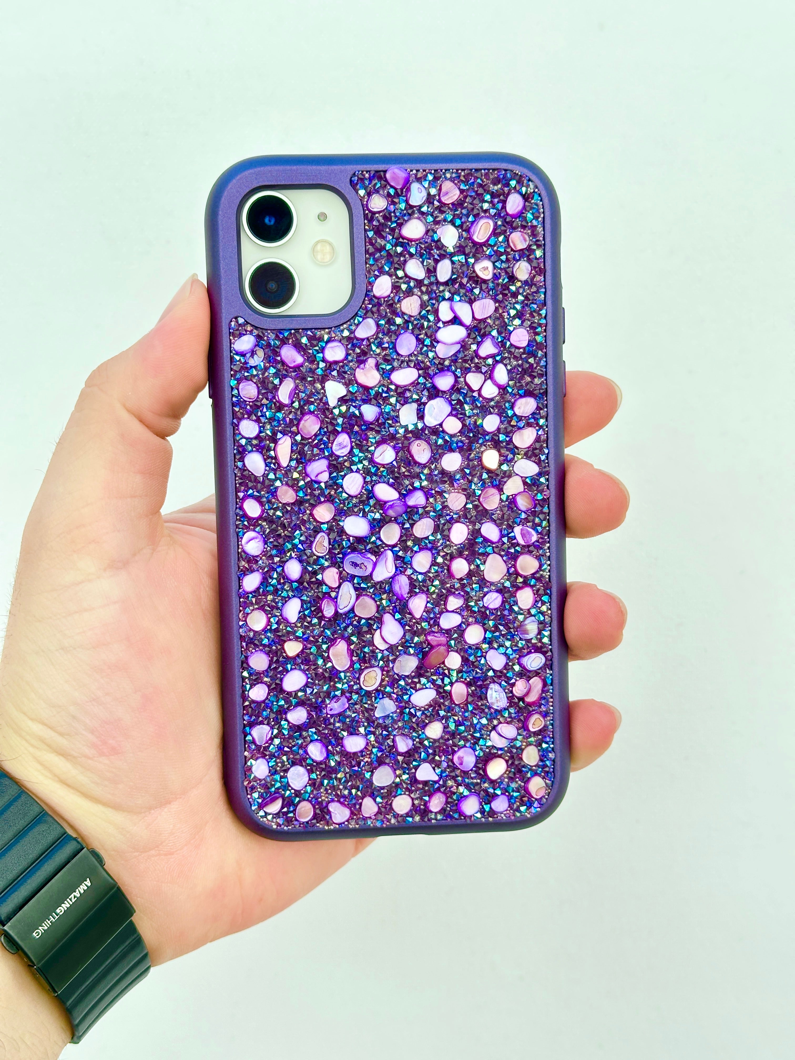 iPhone 11 Göz Alıcı Mercan Taşlı İçi Kadife Kaplamalı Yanları Silikon Kılıf