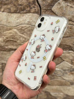 Magsafe Özellikli Kamera Çıkıntılı Hello Kitty Figürlü Şeffaf Hello Kitty Kılıf