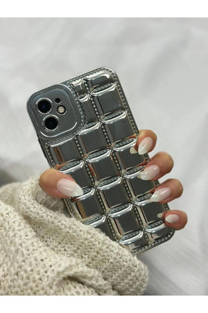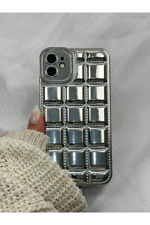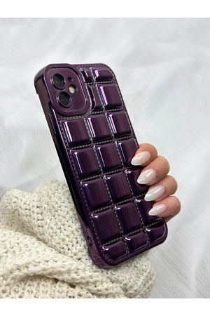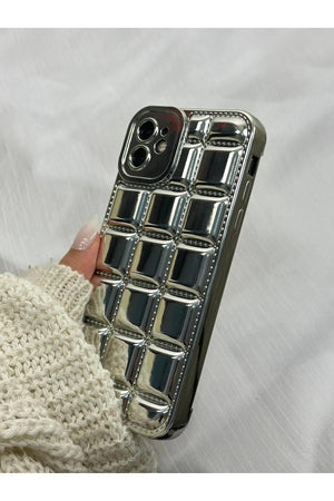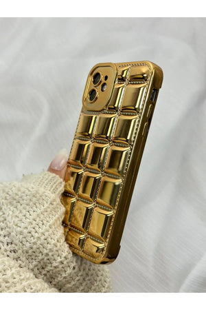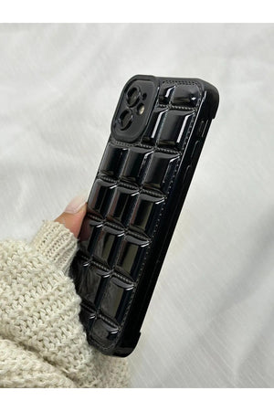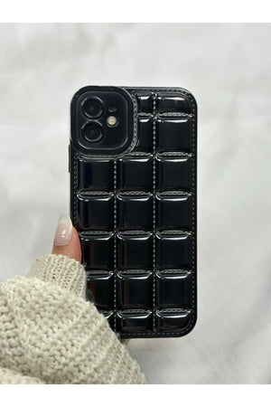 iPhone 11 Kabartmalı Dikiş Detaylı Baklava Desenli Parlak Vivid Kılıf Kılıf