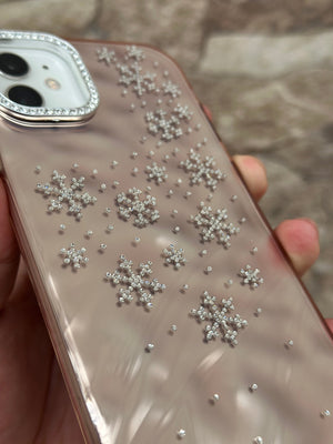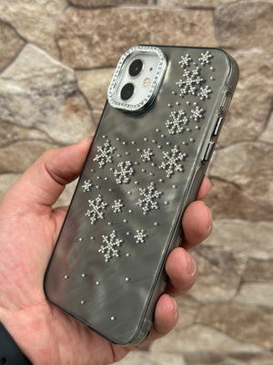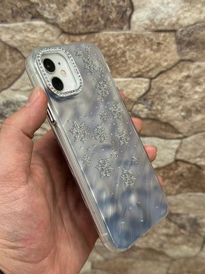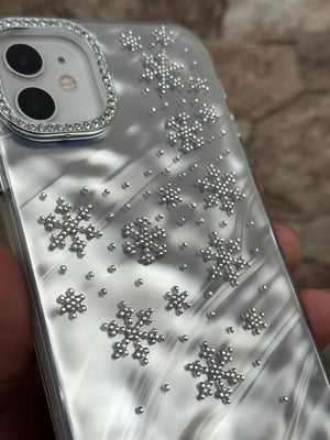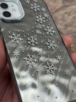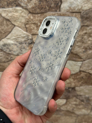 Bu göz alıcı telefon kılıfı, şık ve zarif görünümüyle telefonunuzu korurken tarzınızı ön plana çıkarır. Kristal detaylarla süslenmiş kar tanesi desenleri, kılıfa kışın büyüleyici havasını katıyor. Parlak ve yansıtmalı arka yüzeyi sayesinde ışıkla birlikte farklı tonlar yansıtarak şıklığınızı tamamlıyor. Kamera çerçevesindeki taşlı detaylar ise ekstra ışıltı katıyor.