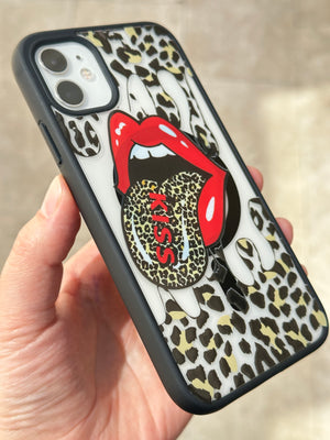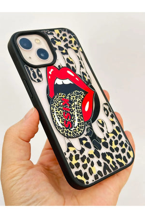 Bu, üzerinde leopar deseni ve kırmızı dudak baskısı olan bir kılıfıdır. Kılıf, telefonu darbelere ve çizilmelere karşı korumak için tasarlanmıştır. Aynı zamanda şık bir görünüme sahiptir ve telefonunuza kişisel bir dokunuş katmak için harika bir yoldur.