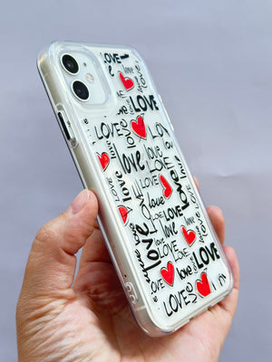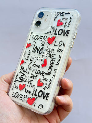 iPhone 11 Metal Tuşlu Şeffaf Love Kalp Desenli Kılıf