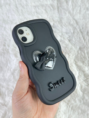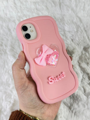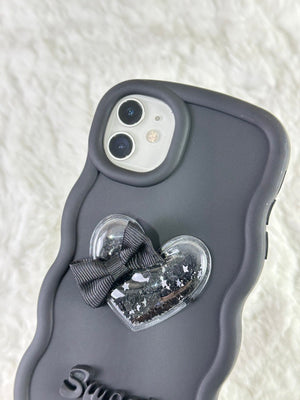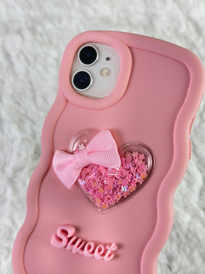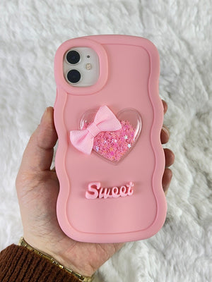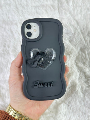 iPhone 11 Renkli Kalp Kurdele Detaylı Simli Dalgalı Sweety Kılıf