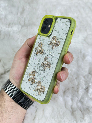 Bu telefon kılıfı, şık ve göz alıcı bir tasarıma sahip. Üzerinde ışıltılı ve parıltılı bir arka plan var; bu arka plan, kılıfa benzersiz bir doku ve hareket katıyor. Kılıfın dikkat çekici detayları arasında, şeffaf bir tabanın üzerinde yer alan parlak desenli süslemeleri bulunuyor. Bu desenler kılıfa hem sevimli hem de lüks bir hava katıyor. Tasarım, kullanıcıya hem zarif bir görünüm sunarken hem de telefonun arka kısmını çizilmelere ve darbelere karşı koruyor.