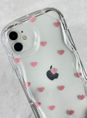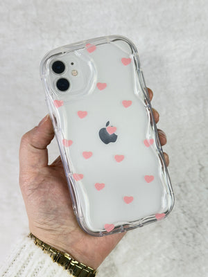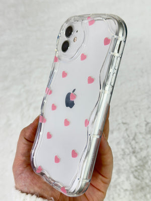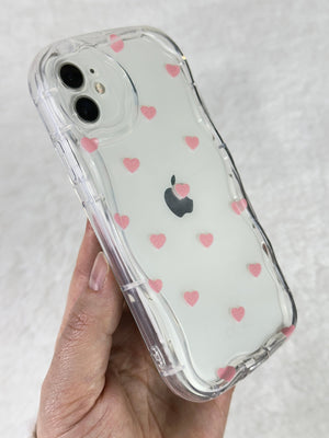 iPhone 11 Şeffaf Pembe Kalp Desenli Kamera Çıkıntılı Poly Kılıf