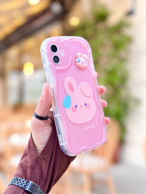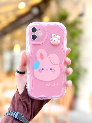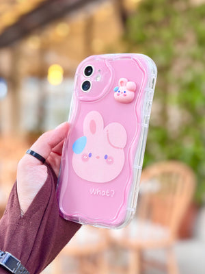 Sevimli tavşan tasarımıyla iPhone'unuza hem koruma hem de şirinlik katan özel bir kılıftır. Pembe tonlarındaki şeffaf yapısı, telefonunuzun rengini gösterirken üzerindeki sevimli tavşan figürü ve 'What?' yazısı ile kişiliğinizi yansıtır. Kılıfın üst kısmındaki 3D tavşan detayı, dokunsal bir his katarak tasarımı tamamlar. Dayanıklı malzemesi darbelere karşı koruma sağlarken, hassas kesimli kamera açıklığı fotoğraf çekiminizi engellememektedir. Bu kılıf, telefonunuzu korurken tarzınızı ve neşenizi de yansıtmanızı sağlar. BunnyBloom ile iPhone'unuz hem güvende hem de göz alıcı olacak.