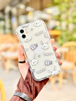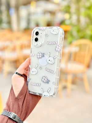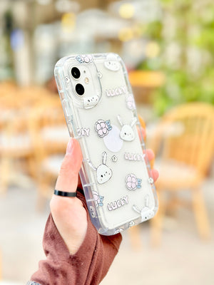 iPhone 11 Tavşan ve Çiçek Desenli Şeffaf Telefon Lucky Kılıfı
