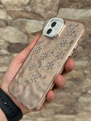 Bu göz alıcı telefon kılıfı, şık ve zarif görünümüyle telefonunuzu korurken tarzınızı ön plana çıkarır. Kristal detaylarla süslenmiş kar tanesi desenleri, kılıfa kışın büyüleyici havasını katıyor. Parlak ve yansıtmalı arka yüzeyi sayesinde ışıkla birlikte farklı tonlar yansıtarak şıklığınızı tamamlıyor. Kamera çerçevesindeki taşlı detaylar ise ekstra ışıltı katıyor.