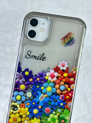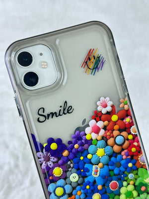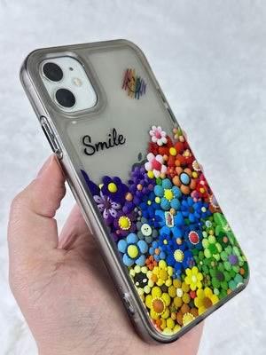 iPhone 12 Renkli Çiçek Desenli Smile Yazılı Pox Kılıf
