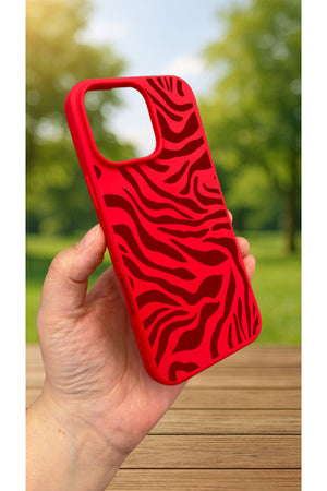 iPhone 13 -KIRMIZI ZEBRA DESENLİ Silikon Darbe Emici Klasik Korumalı Rubber Kılıf