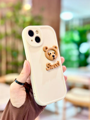 iPhone 13 Ayıcık Desenli Sevimli 3 Boyutlu Tatlı Şirin Kamera Korumalı Silikon Shape Kılıf