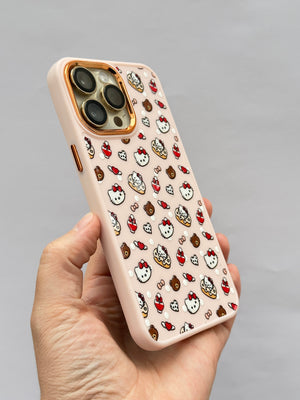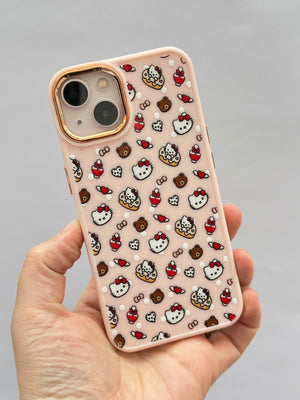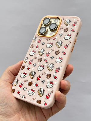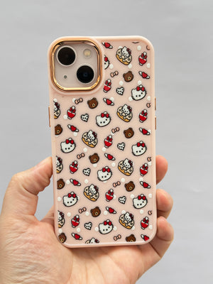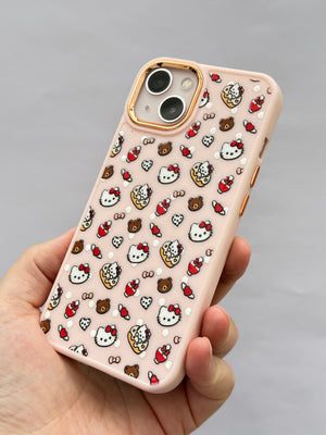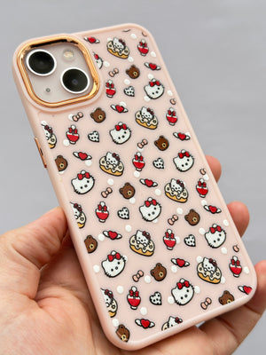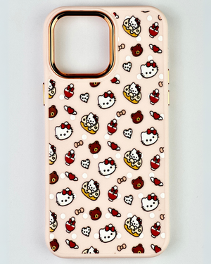 Dünyaca ünlü sevimli kedi Hello Kitty, bu şirin tasarımlı telefon kılıfıyla şimdi telefonunuzu süslüyor! Pembe zemin üzerine Hello Kitty figürleri, tatlı kurabiyeler, sevimli ayıcıklar ve kalplerle bezenmiş bu kılıf, telefonunuza hem eğlenceli hem de sevimli bir görünüm kazandırır.