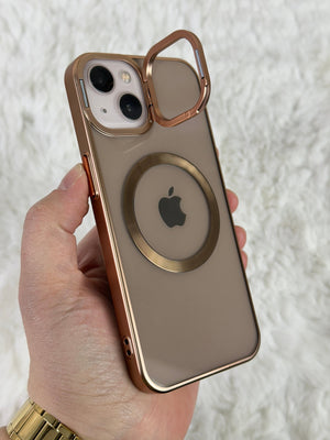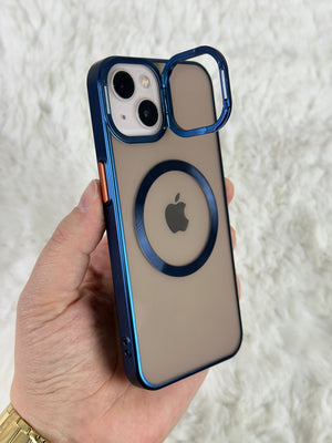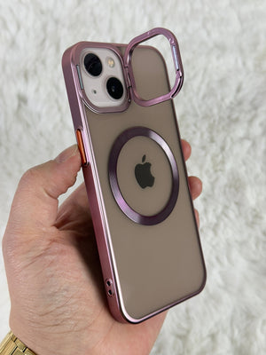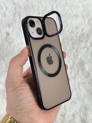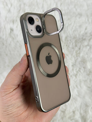 iPhone 13 MagSafe Özellikli Kamera Kısmı Stand Olabilen Kılıf ile Aynı Renk Kamera Lens Koruyuculu Magic Pro Kılıf