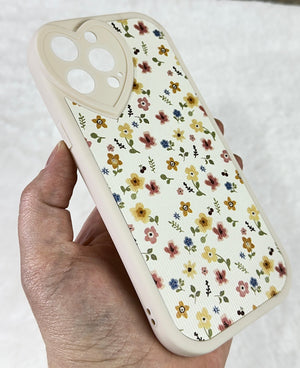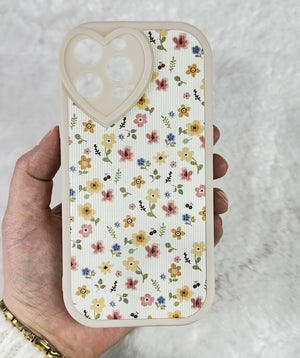 iPhone 13 Pro Max Kamera Korumalı Kalp Çerçeveli Çiçek Desenli Zarif Tasarımlı Flove Kılıf