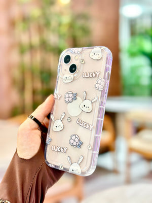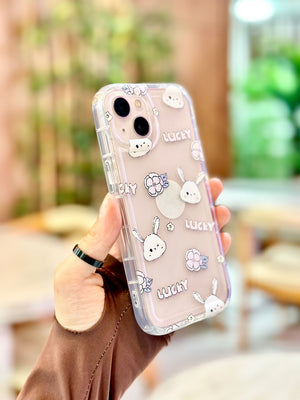 iPhone 13 Tavşan ve Çiçek Desenli Şeffaf Telefon Lucky Kılıfı