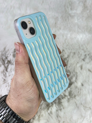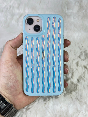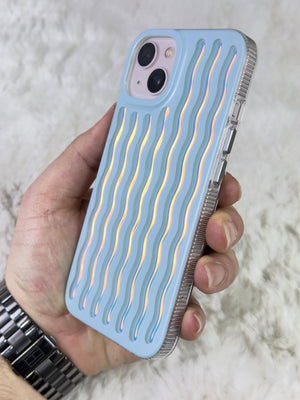 Modern ve minimalist bir tasarım sunuyor. Açık mavi zemin üzerinde dalgalı ve yumuşak dokulu çizgiler bulunuyor. Çizgiler, mavi tonlarla birlikte altın ve şeffaf beyaz renkte, parlak bir görünüme sahip. Dalgalı desen, kılıfa hem estetik bir hava hem de benzersiz bir dokunuş katıyor. Kılıf, telefonu korurken aynı zamanda zarif ve sade bir tarz isteyen kullanıcılar için ideal bir seçenek. Bu tarz kılıflar, hem günlük kullanımda hem de şık kombinlerde tercih edilebilir. Kılıf, aynı zamanda telefonun arka kısmını çizilmelere ve darbelere karşı koruma görevini üstleniyor.