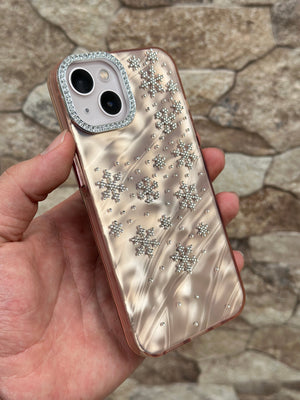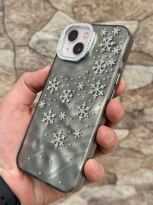 Bu göz alıcı telefon kılıfı, şık ve zarif görünümüyle telefonunuzu korurken tarzınızı ön plana çıkarır. Kristal detaylarla süslenmiş kar tanesi desenleri, kılıfa kışın büyüleyici havasını katıyor. Parlak ve yansıtmalı arka yüzeyi sayesinde ışıkla birlikte farklı tonlar yansıtarak şıklığınızı tamamlıyor. Kamera çerçevesindeki taşlı detaylar ise ekstra ışıltı katıyor.