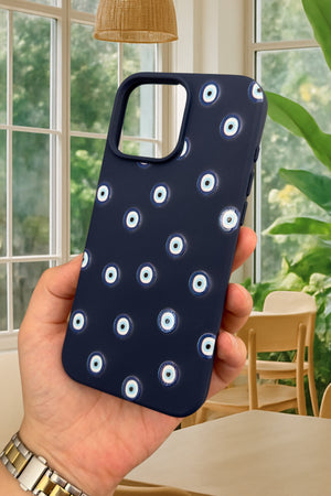 iPhone 14 Plus ve 15 Plus -NAZAR BONCUK DESENLİ Silikon Darbe Emici Klasik Korumalı Rubber Kılıf