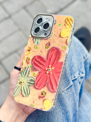 Pastel tonlardaki zarif çiçek desenleriyle bezenmiş bu kılıf, telefonunuza hem şıklık hem de koruma katıyor. Yumuşak renkleri ve dokulu yüzeyiyle dikkat çeken bu tasarım, günlük kullanımda hem göz alıcı hem de rahat bir tutuş sağlar.