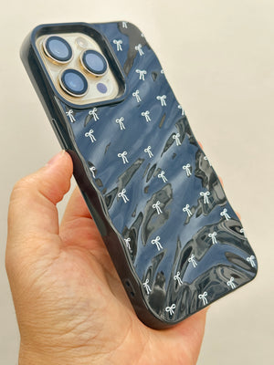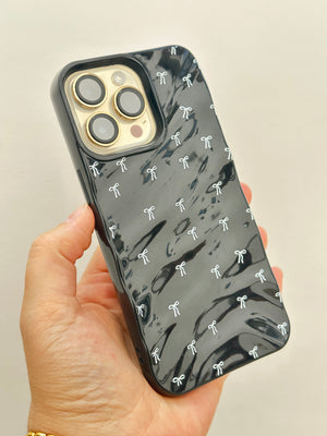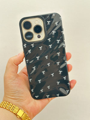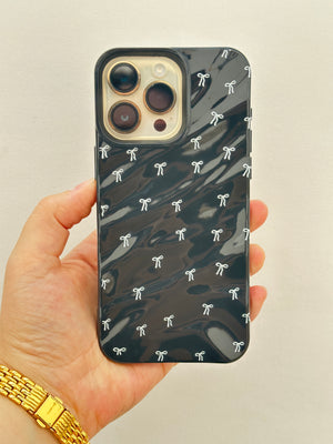 iPhone 14 Pro Max Beyaz Fiyonklu Siyah Kılıf Şık Tasarımlı Telefon Koruyucu