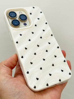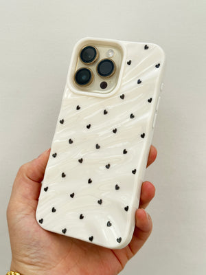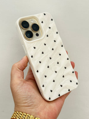 Kalplerle dolu bu şık telefon kılıfı ile cihazınıza sevgi dolu bir dokunuş katın! Beyaz üzerine serpiştirilmiş zarif küçük siyah kalpler, hem minimalist hem de çekici bir görünüm sunar. Yüksek kaliteli malzemeden üretilen bu kılıf, telefonunuzu günlük darbelere ve çizilmelere karşı korurken, hafif yapısıyla rahat bir kullanım sağlar. Yumuşak dokusu sayesinde elinizde hoş bir his bırakır ve cihazınıza kolayca takılıp çıkarılabilir. Telefonunuzu kişiselleştirmek ve her anınıza neşe katmak için mükemmel bir seçimdir.
