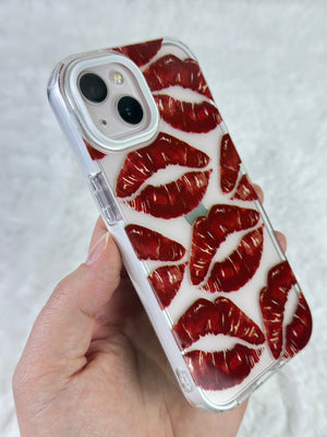 iPhone 15 Kamera Çıkıntılı Şeffaf Kırmızı Dudak Desenli Lips Kılıf