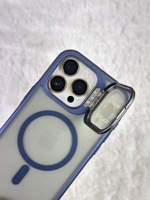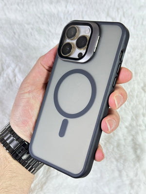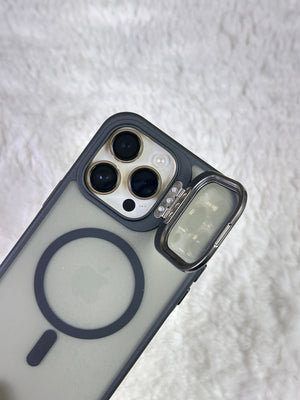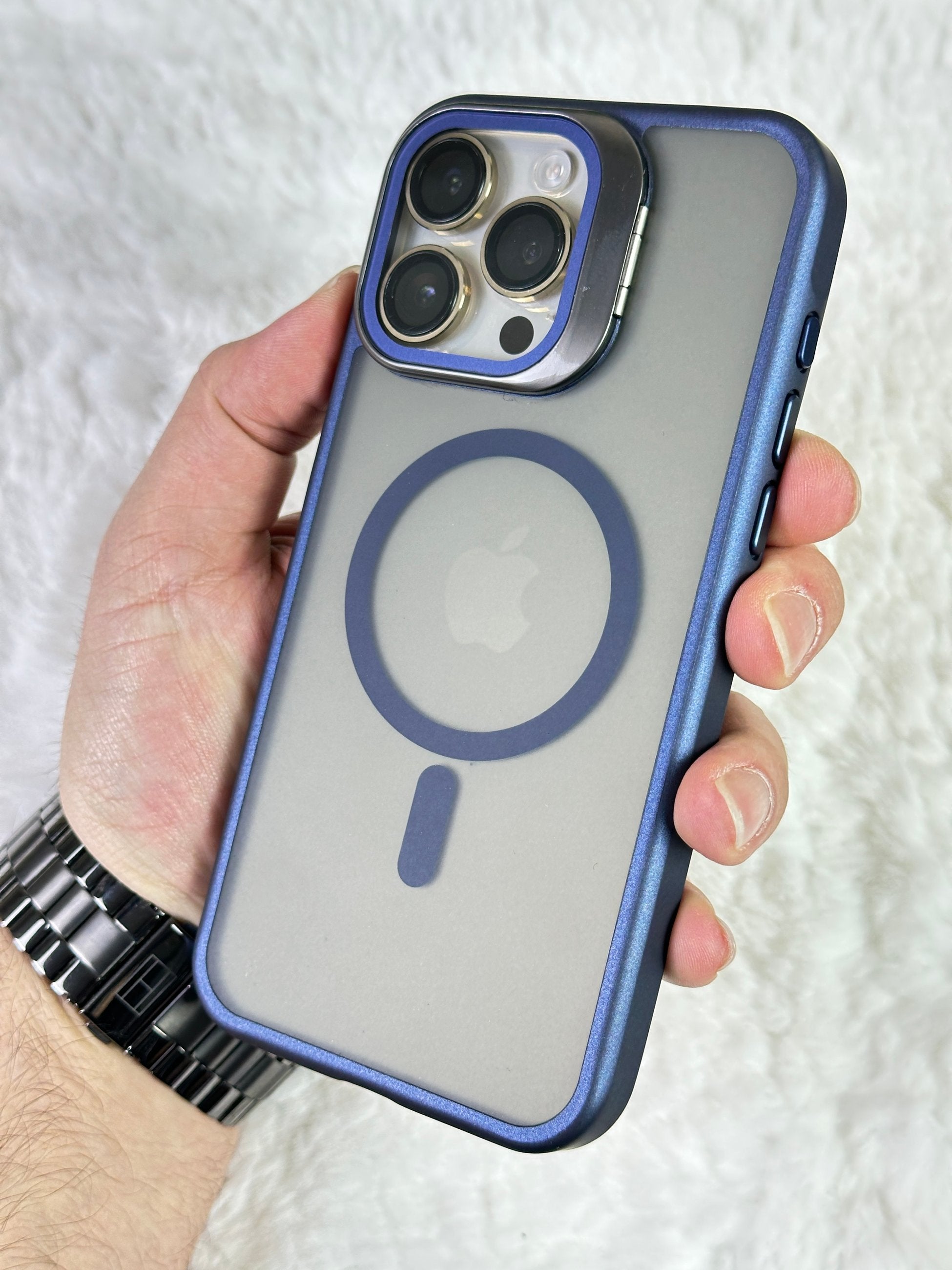 iPhone 15 Pro Max ile Uyumlu Açılabilir Kamera Koruyucu Cam ve Stand Olabilen Arkası Mat Yanları Sert Silikon Duda Magsafe