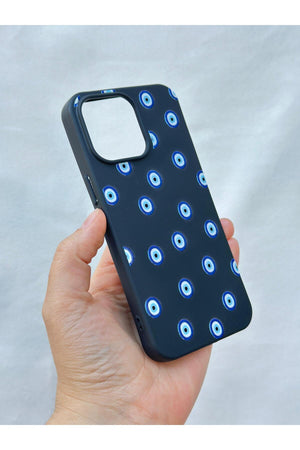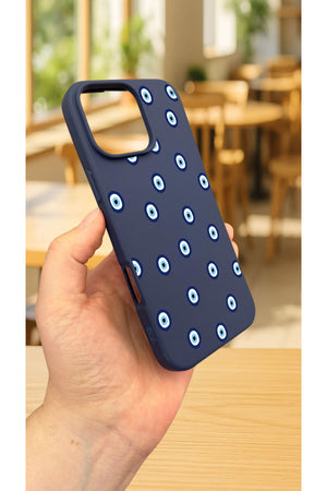 iPhone 15 Pro Max -NAZAR BONCUK DESENLİ Silikon Darbe Emici Klasik Korumalı Rubber Kılıf