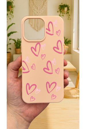iPhone 15 Pro Max - PEMBE KALP DESENLİ Silikon Darbe Emici Klasik Korumalı Rubber Kılıf