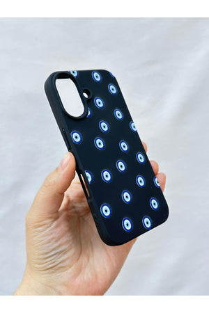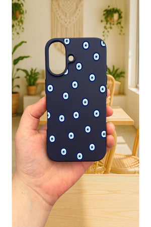 iPhone 16 -NAZAR BONCUK DESENLİ Silikon Darbe Emici Klasik Korumalı Rubber Kılıf