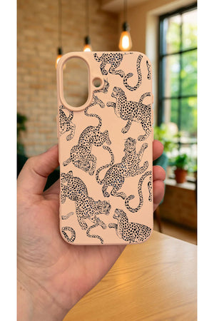 iPhone 16 Plus -LEOPAR DESENLİ Silikon Darbe Emici Klasik Korumalı Rubber Kılıf