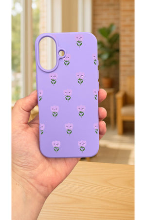 iPhone 16 Plus - MİNİ LALE DESENLİ Silikon Darbe Emici Klasik Korumalı Rubber Kılıf