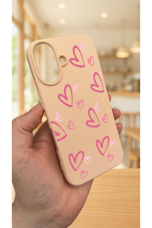 iPhone 16 Plus -PEMBE KALP DESENLİ Silikon Darbe Emici Klasik Korumalı Rubber Kılıf