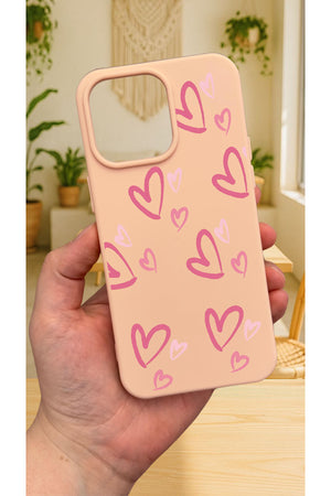 iPhone 16 Pro Max -PEMBE KALP DESENLİ Silikon Darbe Emici Klasik Korumalı Rubber Kılıf