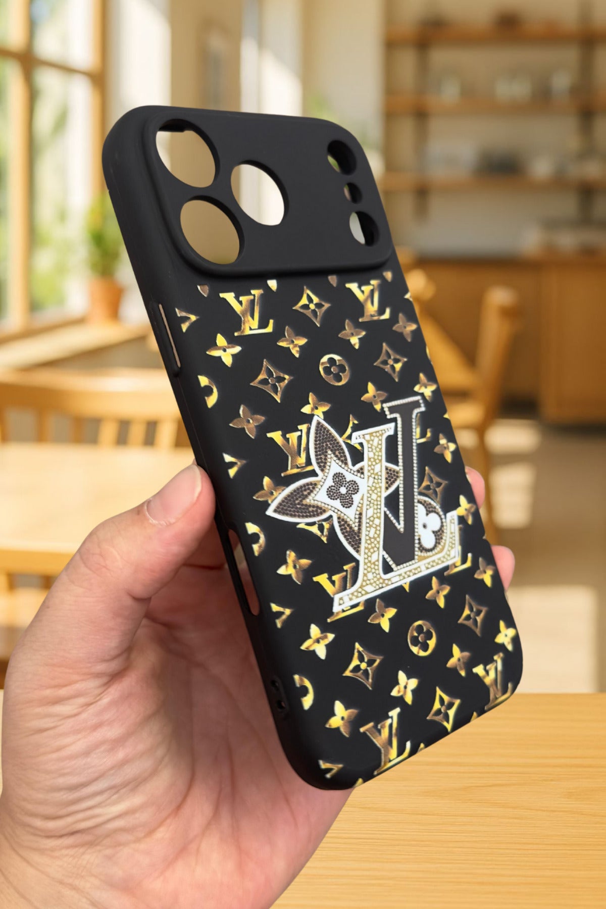 iPhone 17 Pro Max Uyumlu LV Desenli Silikon Darbe Emici Klasik Korumalı Rubber Kılıf