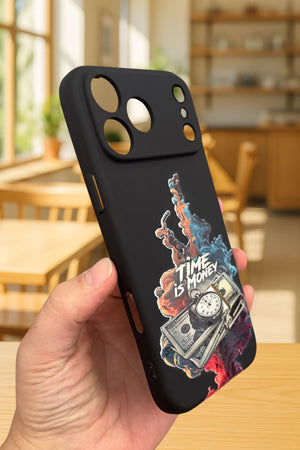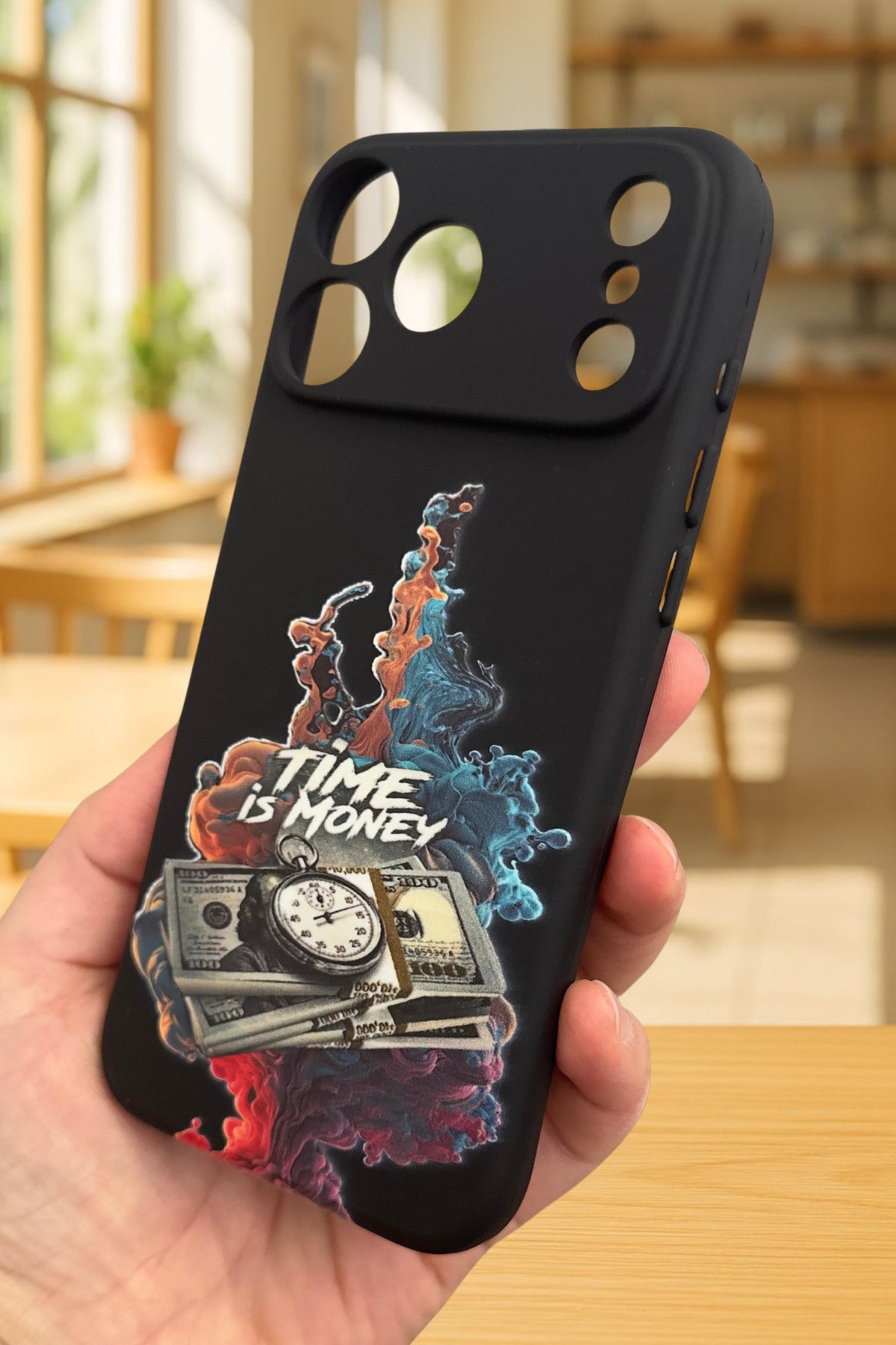 iPhone 17 Pro Uyumlu TIME IS MONEY Silikon Darbe Emici Klasik Korumalı Rubber Kılıf
