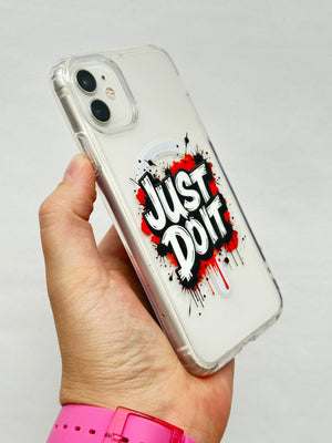 Just Do It Temalı Şeffaf Magsafe Wireless Kablosuz Şarj Destekli V-mags Kılıf
