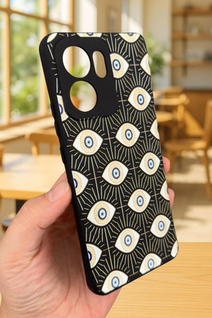 OPPO RENO 13 F Uyumlu Evıl Eye Desenli Silikon Darbe Emici Klasik Korumalı Rubber Kılıf
