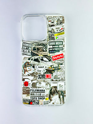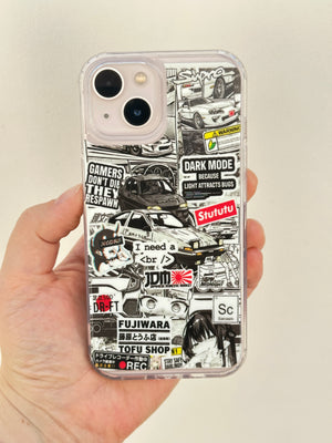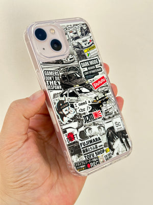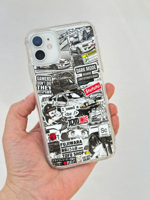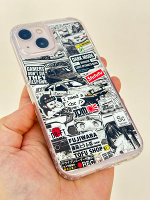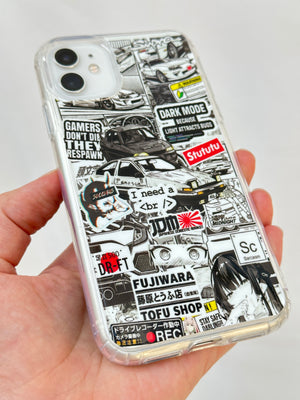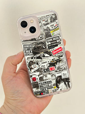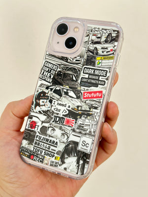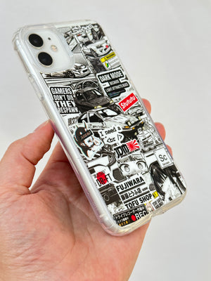 Otomobil Temalı Kolaj Desenli Şeffaf Telefon Kılıfı