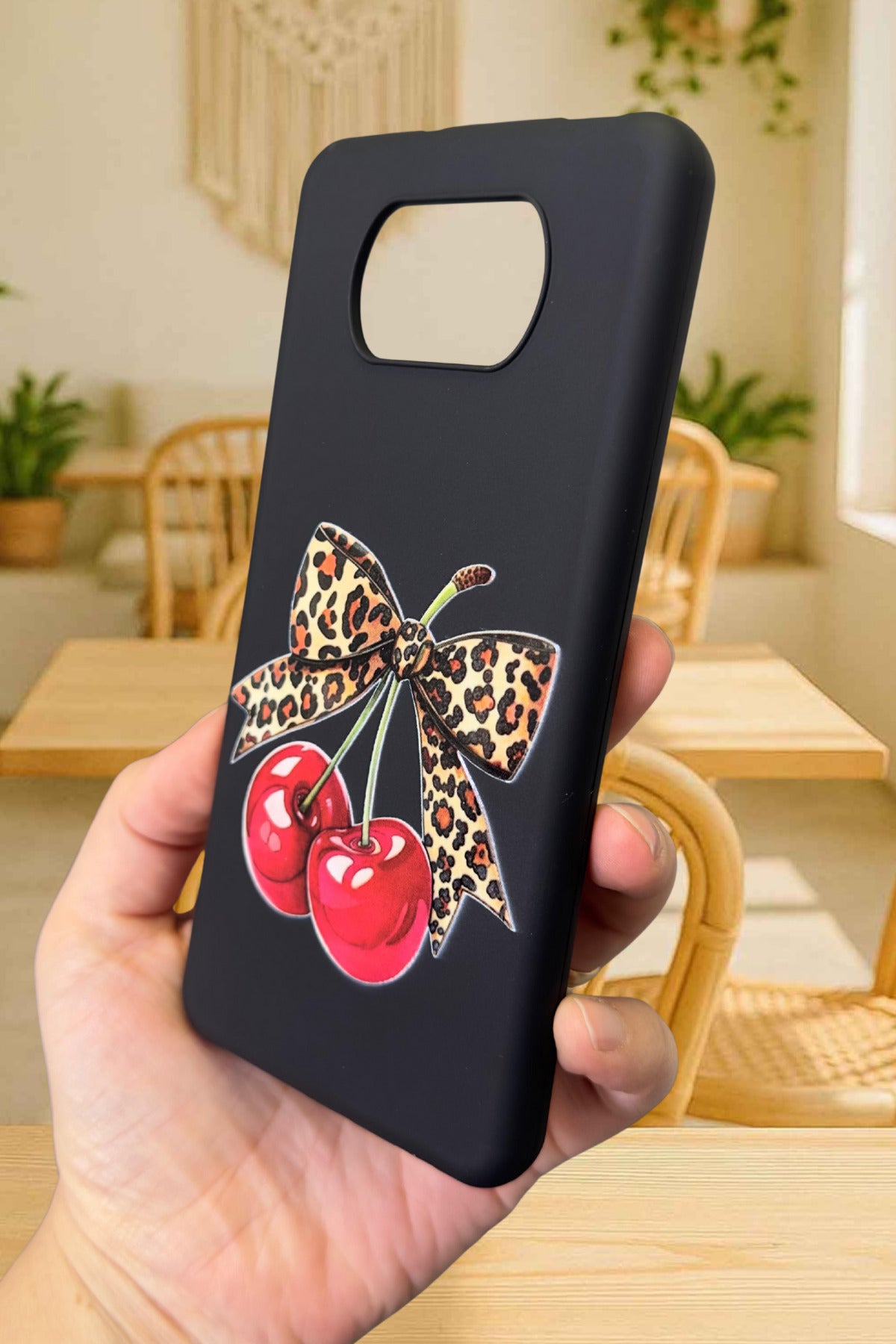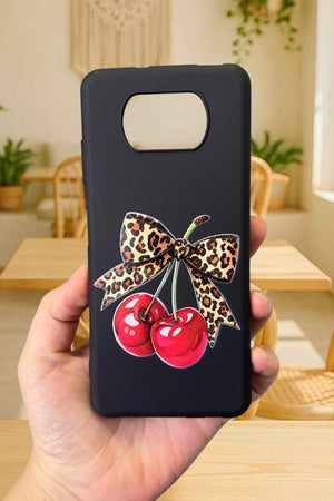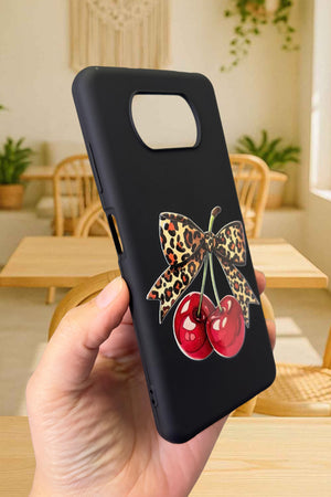 Poco X3 ve X3 Pro Uyumlu Kiraz Leopar Fiyonk Desenli Silikon Darbe Emici Rubber Kılıf